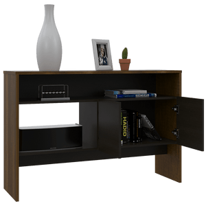 Elaborado en Madera aglomerada MDP, recubierta con láminas melamínicas de excelente calidad, en color Caramelo y Wengue.