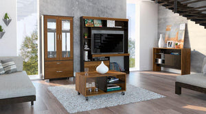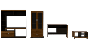 COMBO PARA SALA LETO, INCLUYE MESA PARA TV, VITRINA, MESA AUXILIAR Y MESA DE CENTRO