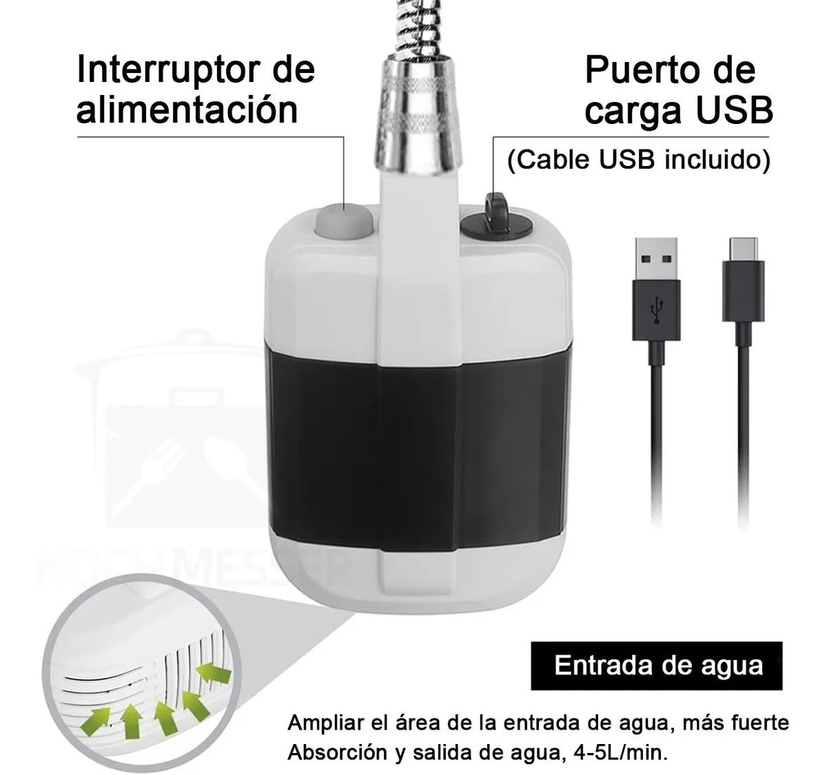 La Regadera Portátil Recargable es la solución perfecta para los amantes de la aventura que desean mantener las comodidades del hogar. Este modelo es fácil de usar y transportar, lo que lo hace ideal para viajes de campamento, excursiones o cualquier actividad al aire libre. Su boquilla de ducha para exteriores y su juego de ducha tipo lluvia te permitirán disfrutar de una experiencia de ducha similar a la de tu hogar, sin importar dónde te encuentres.