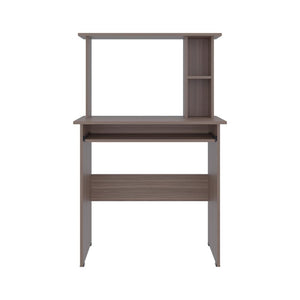 Escritorio, con amplio espacio para computador, entrepaños para colocar libros u objetos, badeja movil para teclado, es de facil instalación