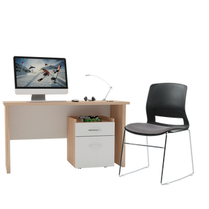 Escritorio multifuncional o centro de computo cuenta con un espacio multifuncional para computador, el cual contiene dos compartimientos que pueden funcionar para usos varios al igual que el espacio superior. Contiene un base para CPU y una bandeja para teclado con rieles metálicos.