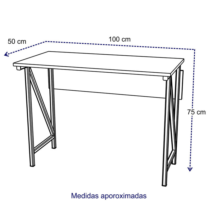 Este escritorio es diseñado para niños y adolescentes, también cuenta con bandejas a los lados para poner objetos. Su cubierta está elaborado con tablero aglomerado de 18 mm recubierto de melamina La estructura que soporta al escritorio es metálica color negra de 50×25 mm. Elaborada con tubería rectangular, con un acabado superficial de pintura electrostática color negro micro texturizado, y en su base tapones plásticos que evitan rayones en las superficies.