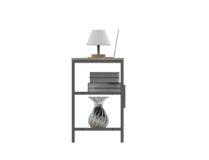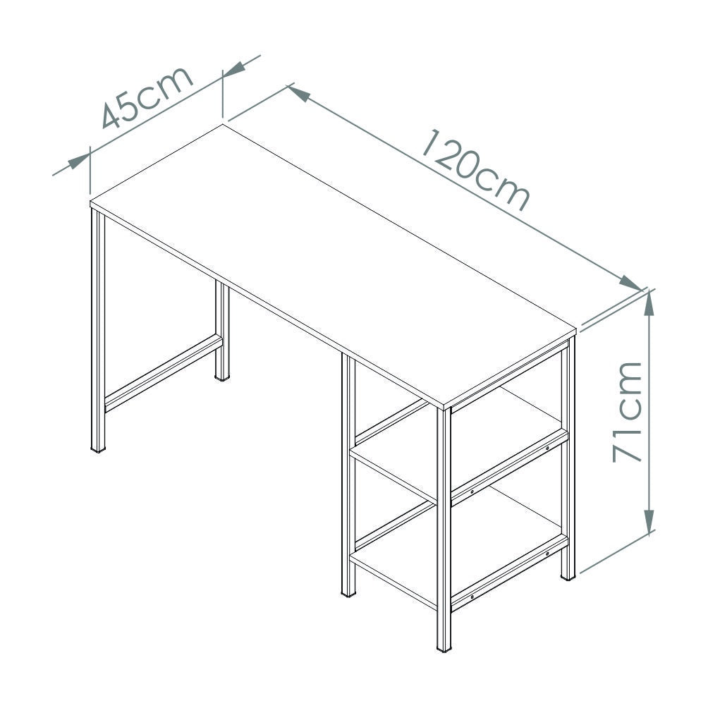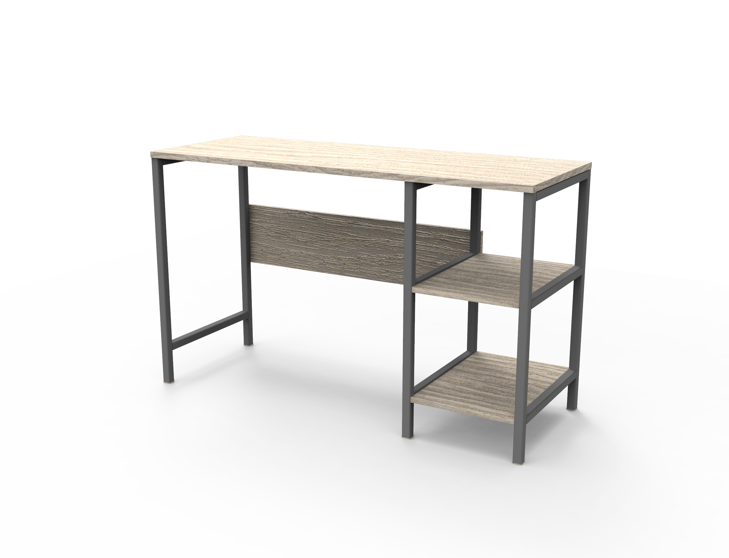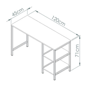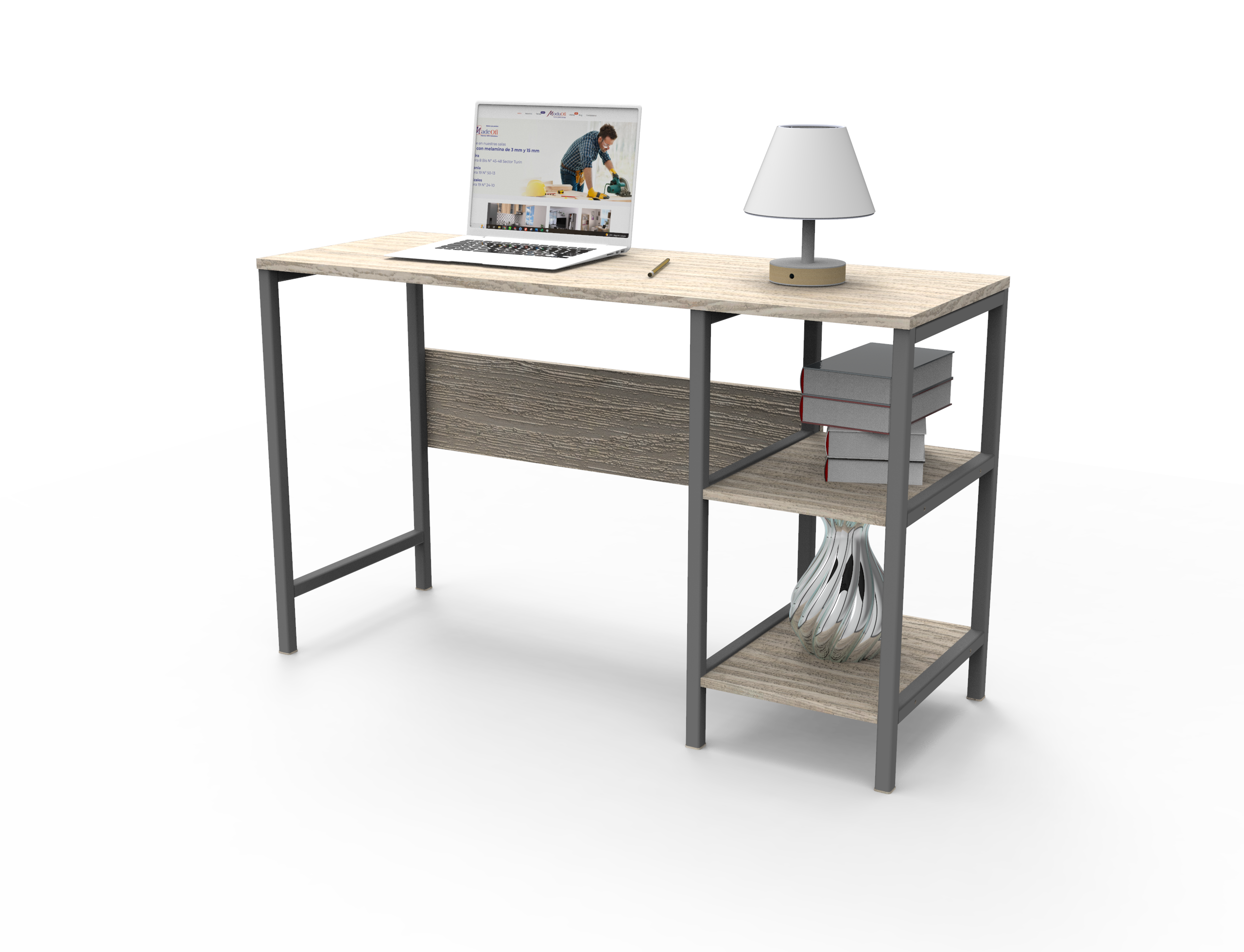 Escritorio con una superficie amplia con dos cajones organizadores con rieles, su diseño cuenta con la combinación de dos colores.