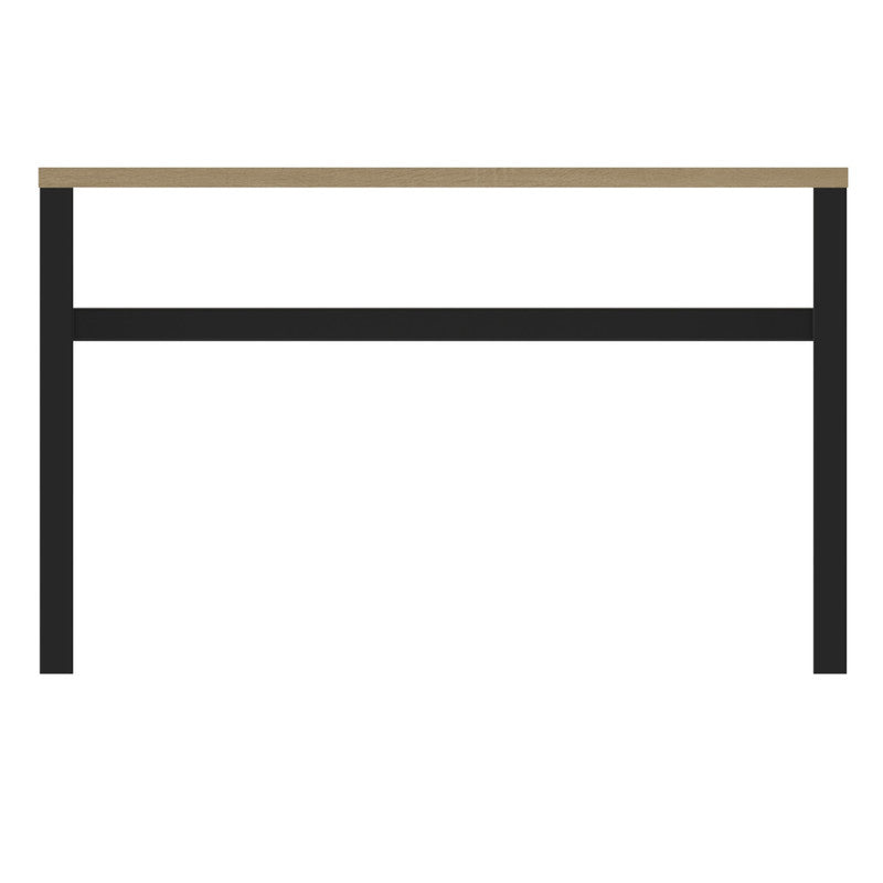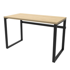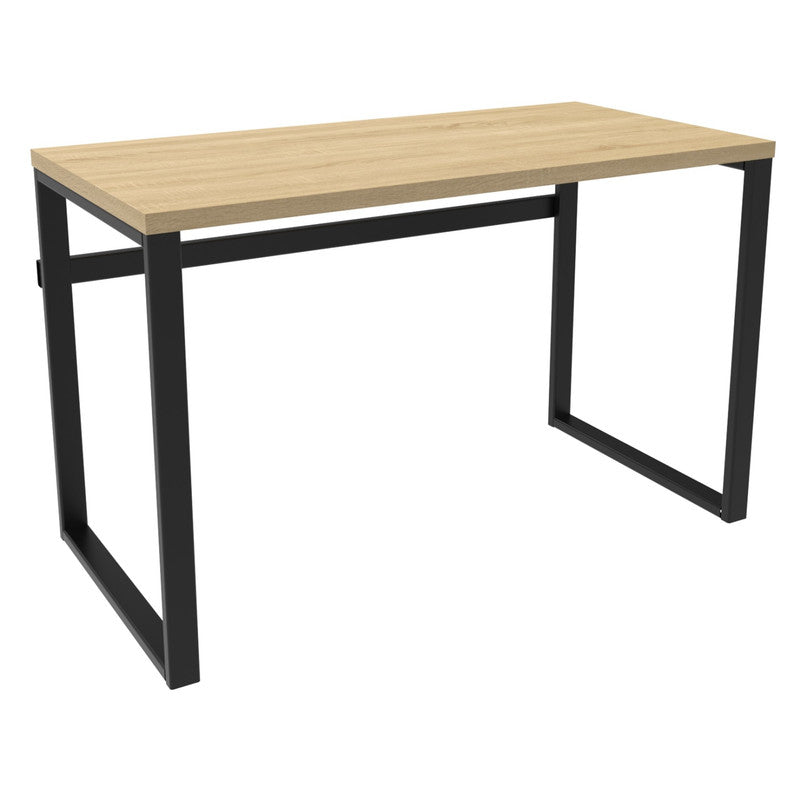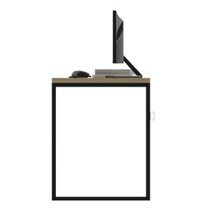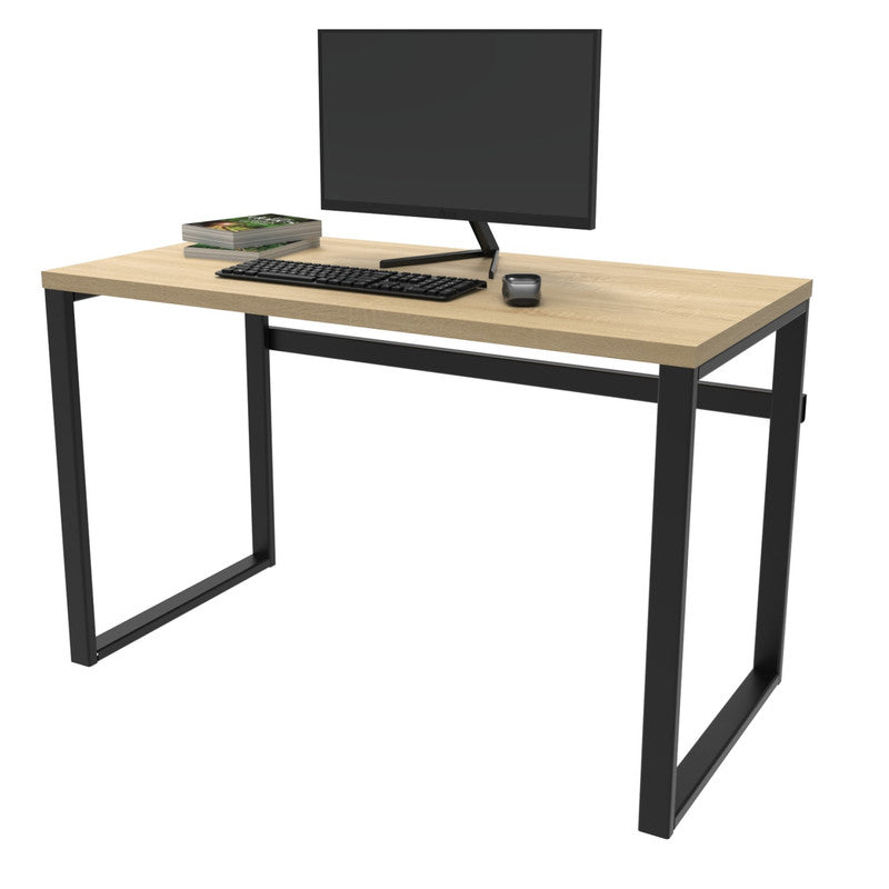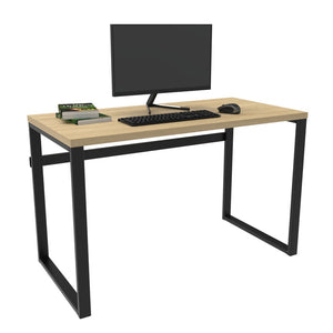Este escritorio es diseñado para cualquier tipo de ambiente, su cubierta tiene un espacio muy amplio, la cubierta es elaborada con tablero aglomerado de 33 mm recubierto de melamina La estructura que soporta el escritorio es metálica en color negro, elaborada con tubería rectangular, con un acabado superficial de pintura electrostática color negro micro texturizado y en su base tapones plásticos o niveladores de tornillo, que evitan rayones en las superficies.