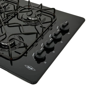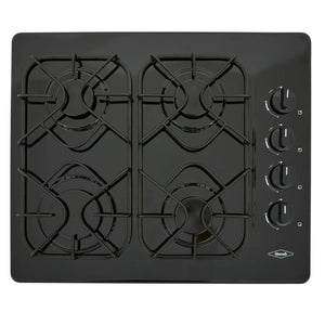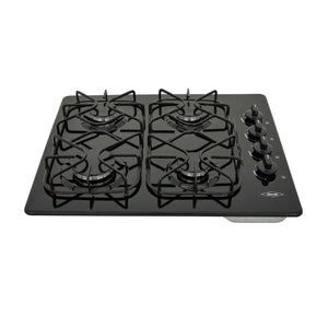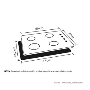 Estufa de empotrar a gas esmaltada color negro de 60 cm de ancho. Cuenta con 4 fogones en diferentes tamaños que se acomodan a los diámetros de tus ollas y pesos de tus preparaciones, parrillas con 8 puntos de apoyo que brindan estabilidad y seguridad. Es de muy facil limpieza gracias a sus perrillas removibles. Enciende solo con girar las perillas.