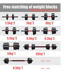 NUESTRO SET 3 EN 1 DE MANCUERNAS Y BARRAS PUEDE SATISFACER TODAS SUS NECESIDADES. PUEDE REALIZAR TODO TIPO DE ENTRENAMIENTOS COMO SENTADILLAS, LEVANTAMIENTOS CON MANCUERNAS, CURLS, PRESS DE SUELO, PRESS DE HOMBROS, ESTIRAMIENTOS DE TRÍCEPS Y MÁS, EN CASA EN CUALQUIER MOMENTO Y LUGAR.