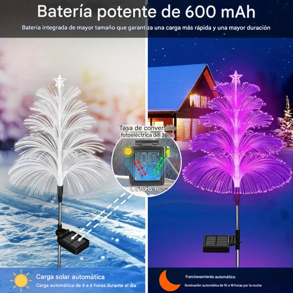 DALE VIDA A TU JARDÍN, TERRAZA O ENTRADA CON ESTA LUZ SOLAR EN FORMA DE ÁRBOL NAVIDEÑO CON FIBRA ÓPTICA ESTILO MEDUSA Y 5 CAPAS BRILLANTES QUE SUPERAN A LOS MODELOS TRADICIONALES. SU EFECTO VISUAL CREA UNA ATMÓSFERA MÁGICA SIN CABLES NI ENCHUFES.