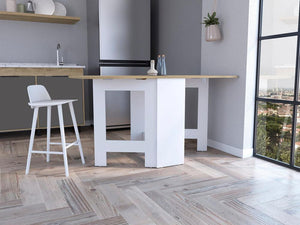 MESA AUXILIAR DE COCINA PLEGABLE MERIDA, BLANCO Y MACADAMIA, CON AMPLIA SUPERFICIE