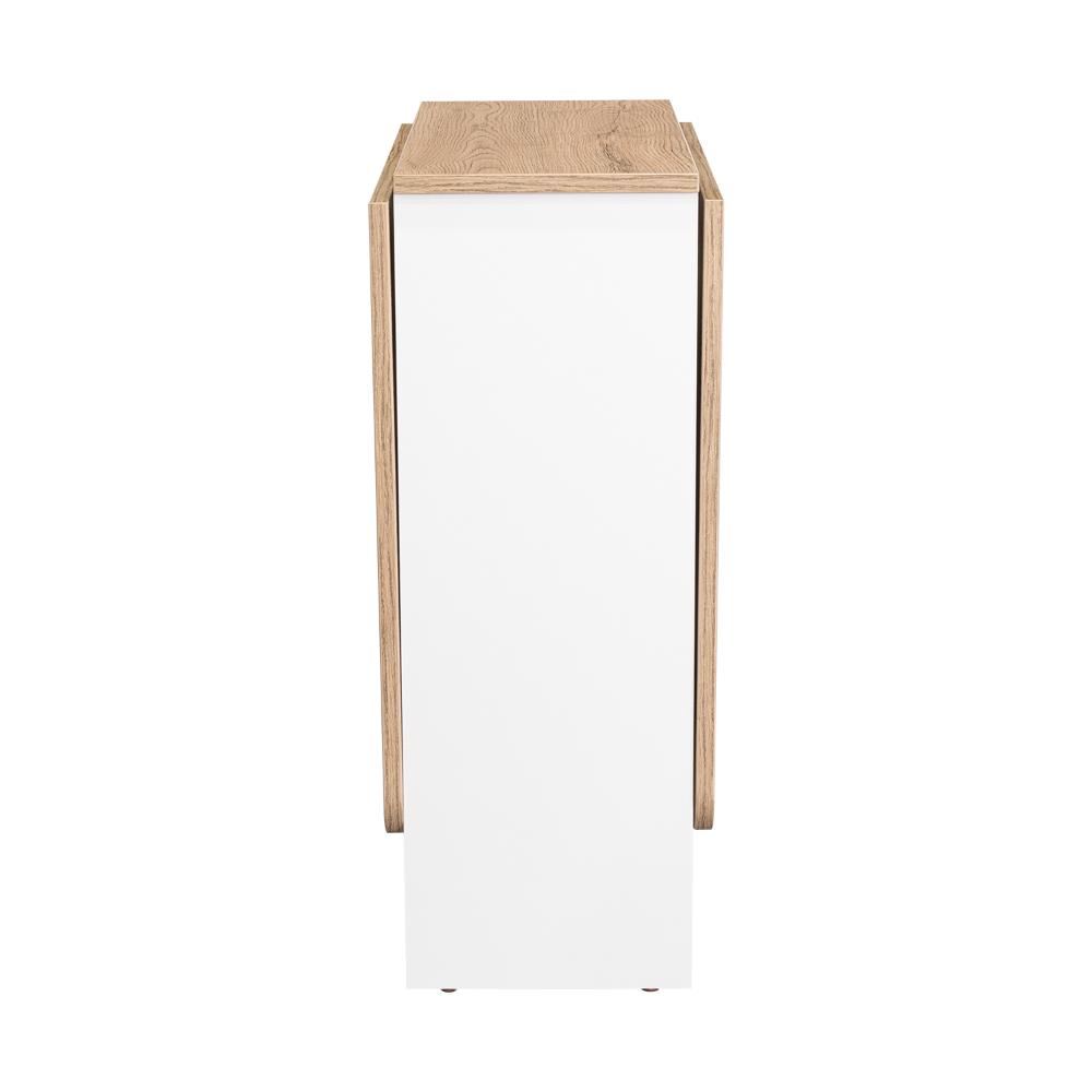 Elaborado en Madera aglomerada MDP, recubierta con láminas melamínicas de excelente calidad, en color Blanco y Macadamia.