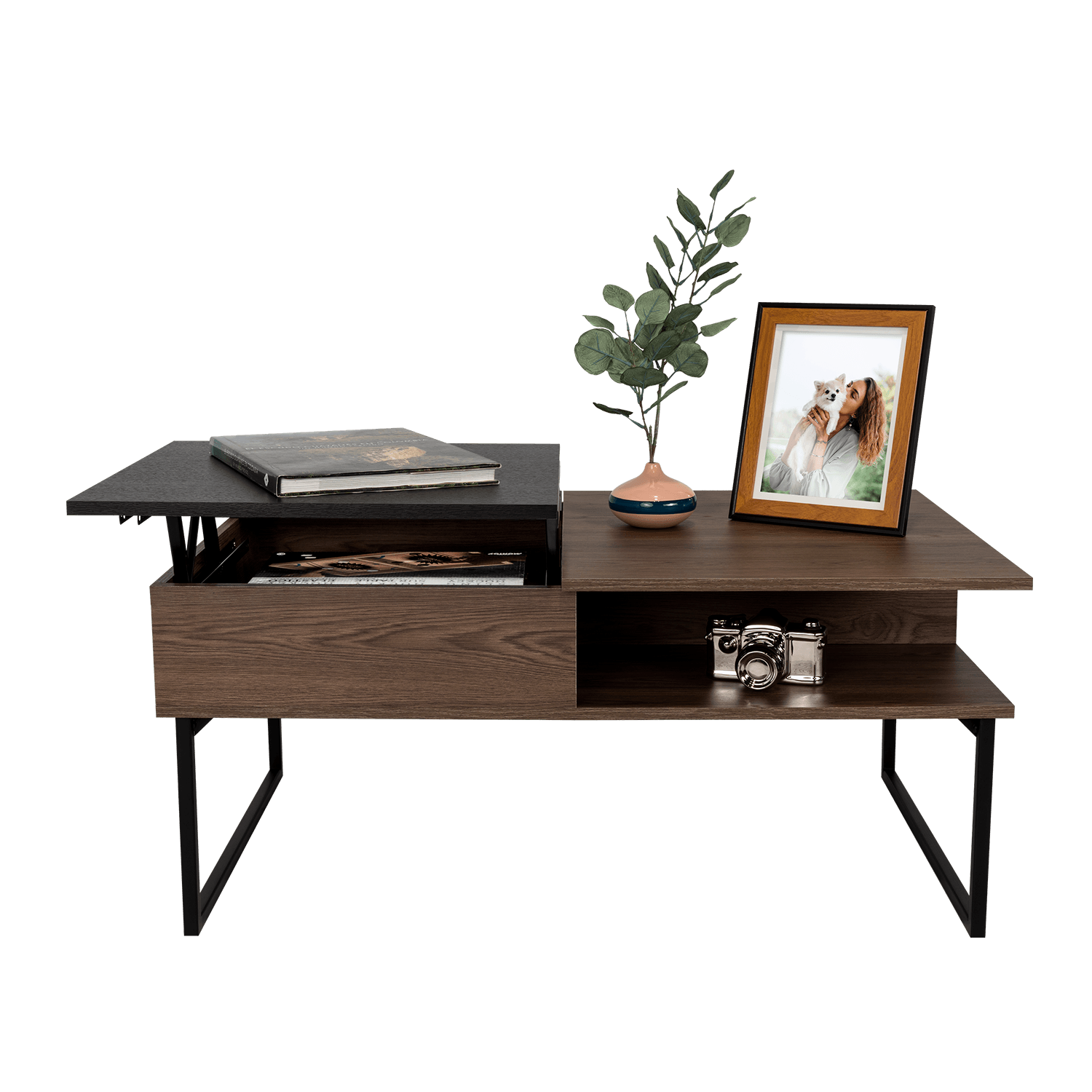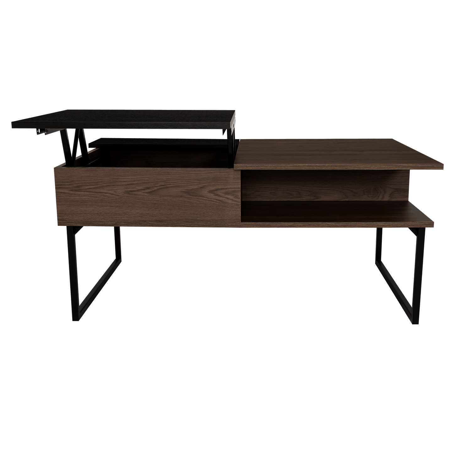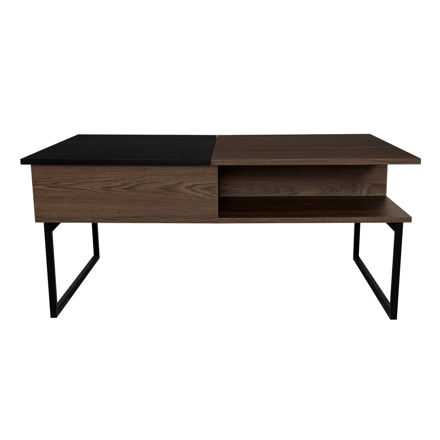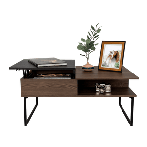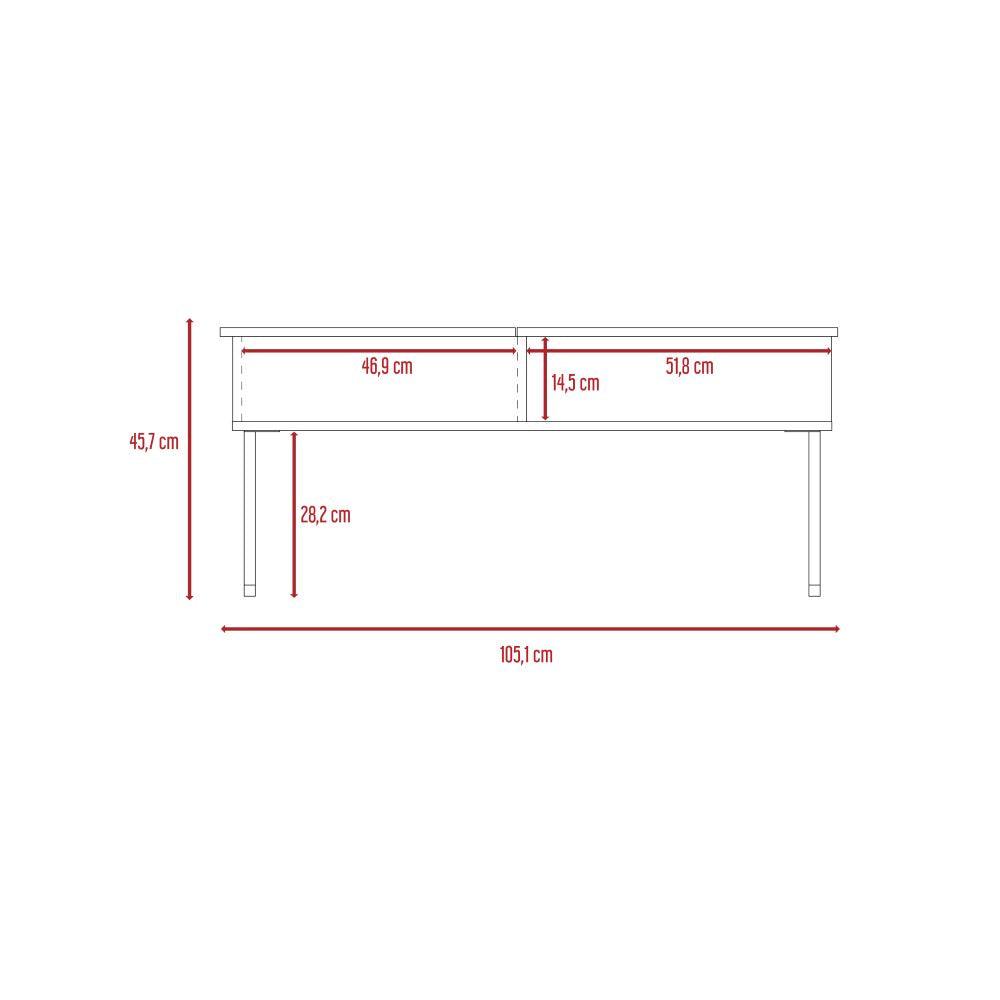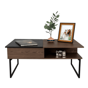 Mesa de Centro Extensible, con 1 cajón, 1 entrepaño, patas metálicas y espacio para objetos decorativos, libros, revistas y otros.