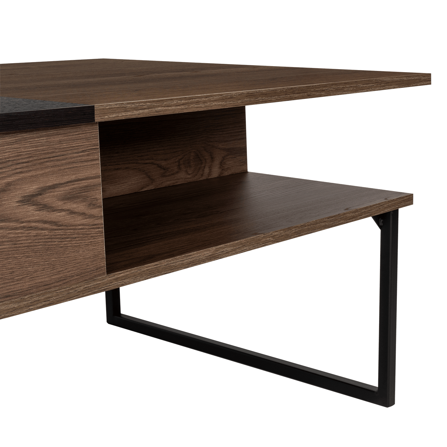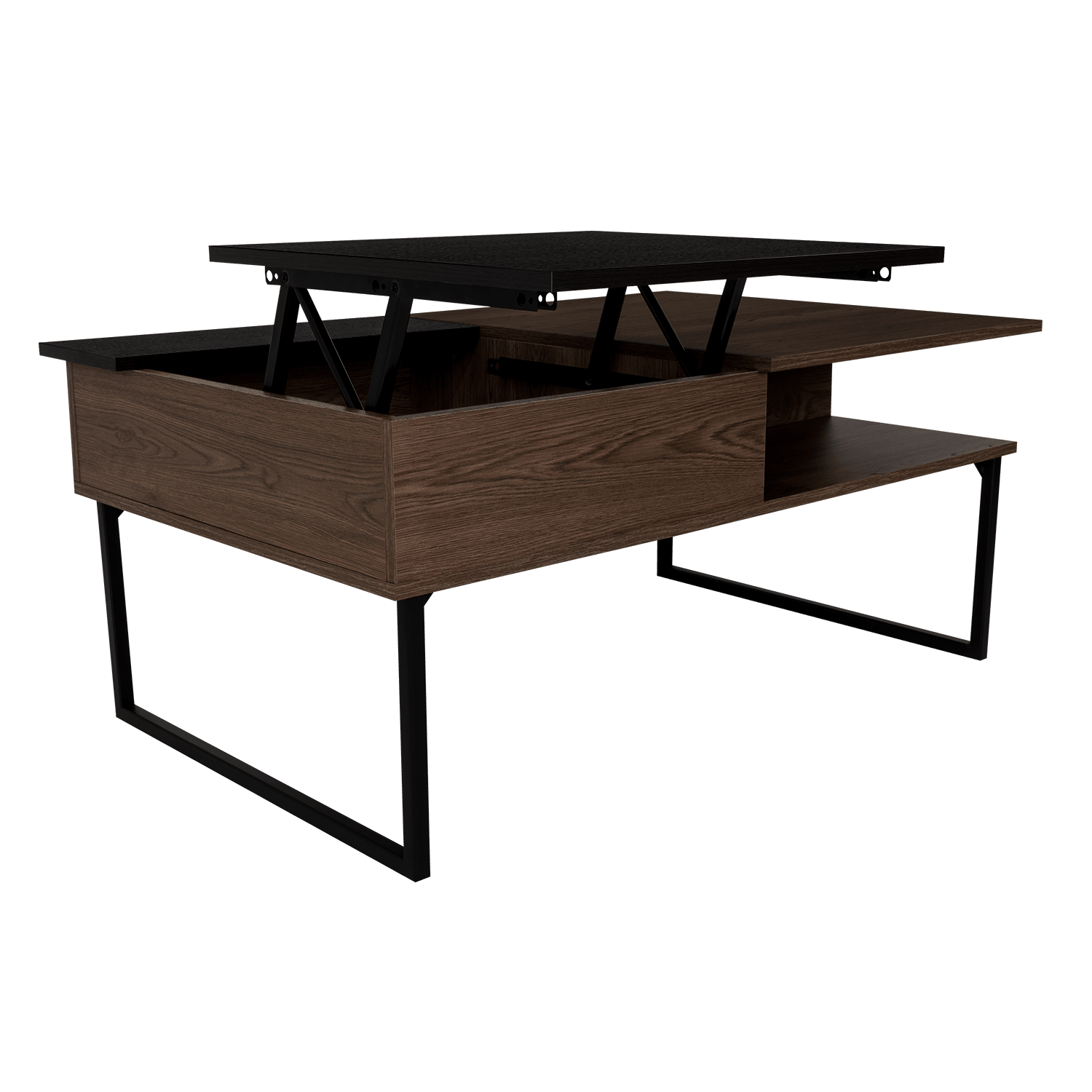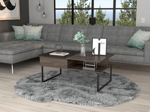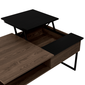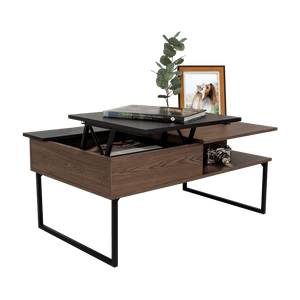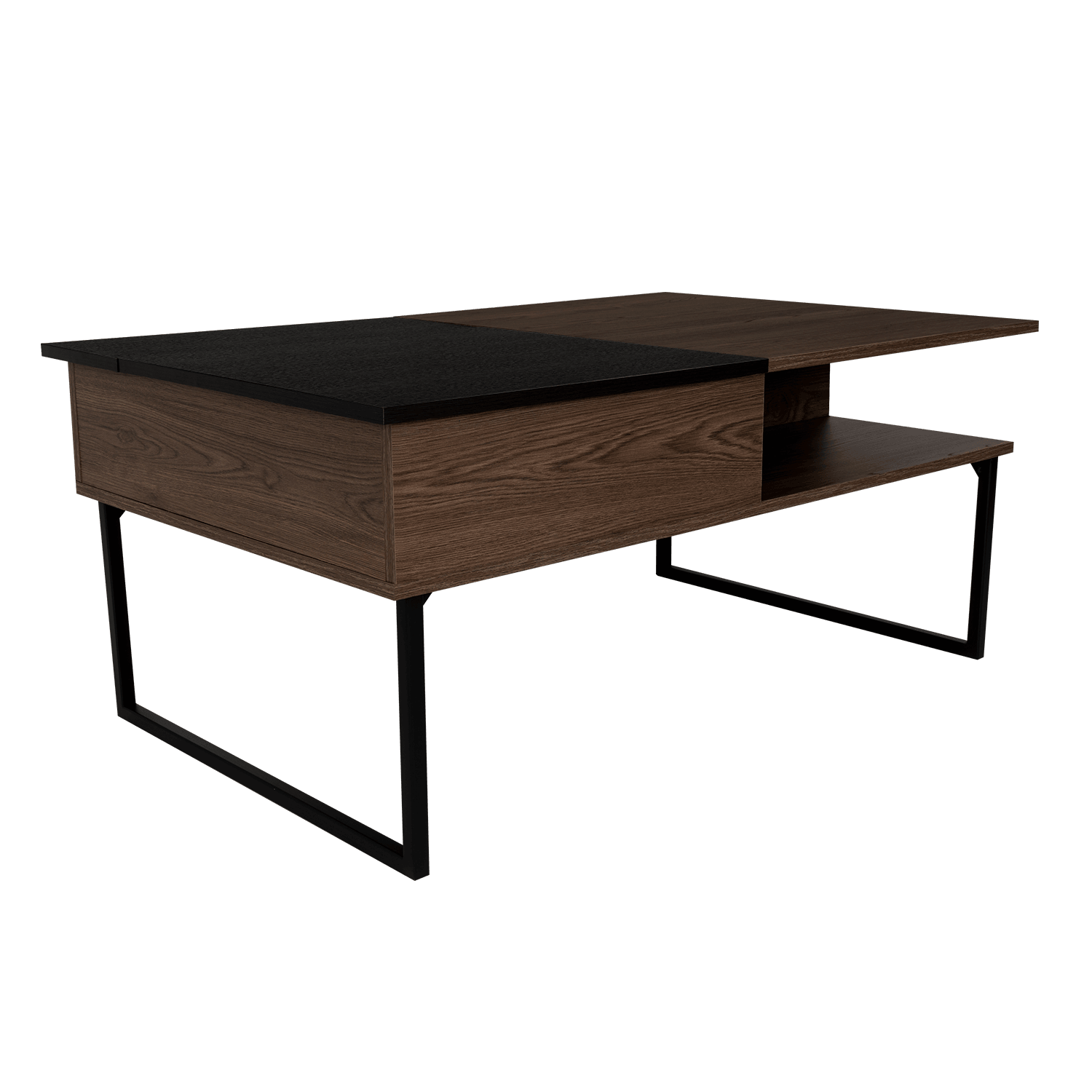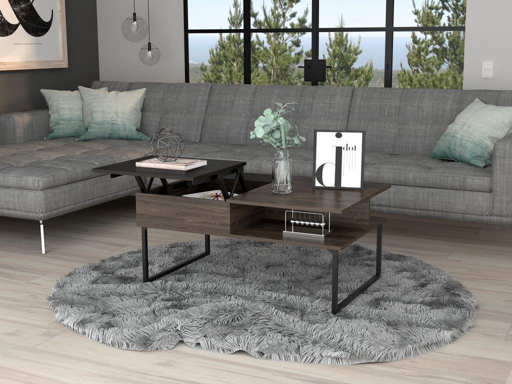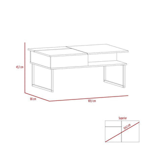 Mesa de Centro Extensible, con 1 cajón, 1 entrepaño, patas metálicas y espacio para objetos decorativos, libros, revistas y otros.