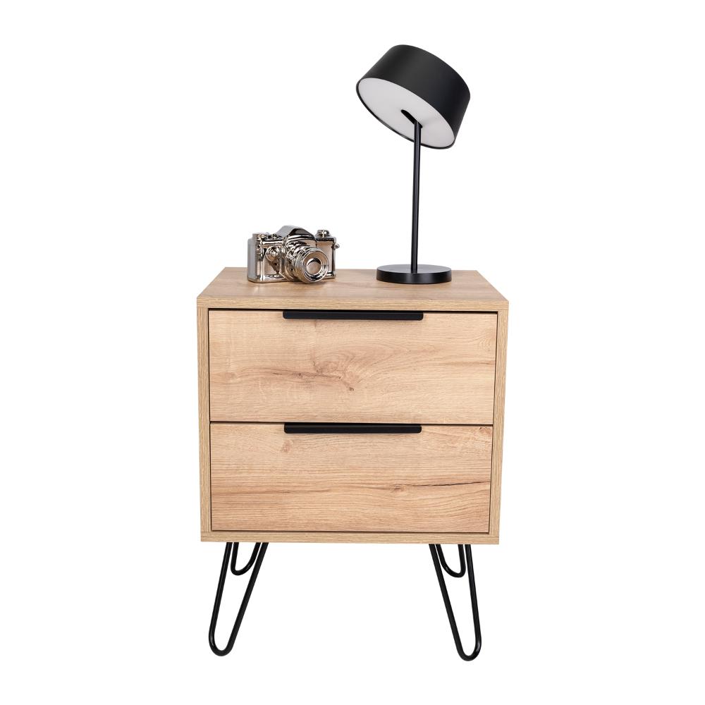 MESA DE NOCHE ALI 2, CAFÉ CLARO, CON DOS CAJONERAS ZF