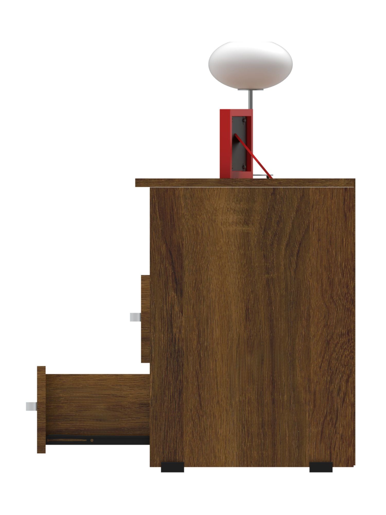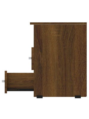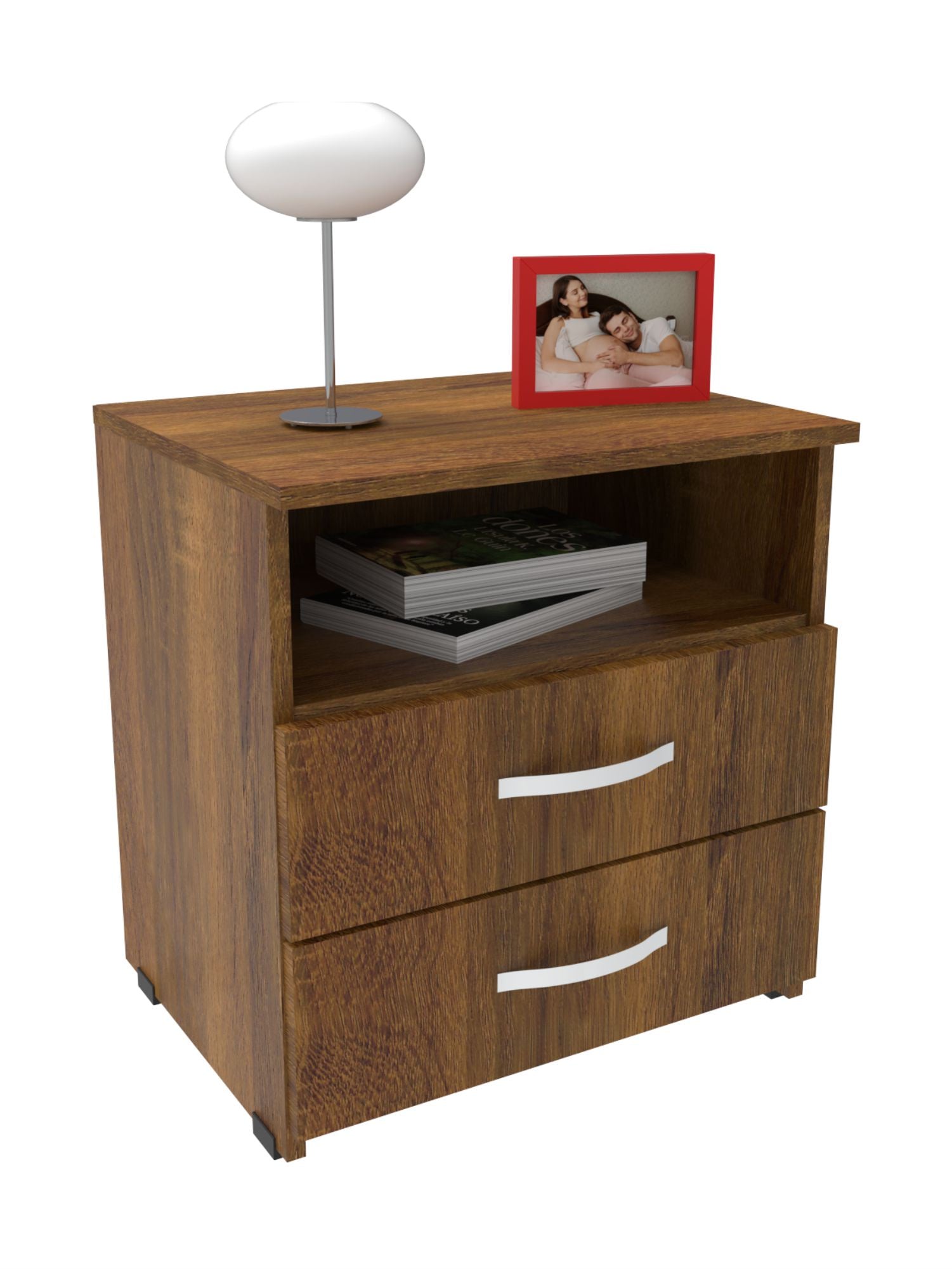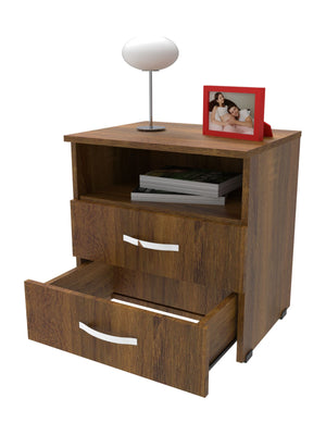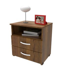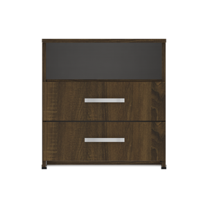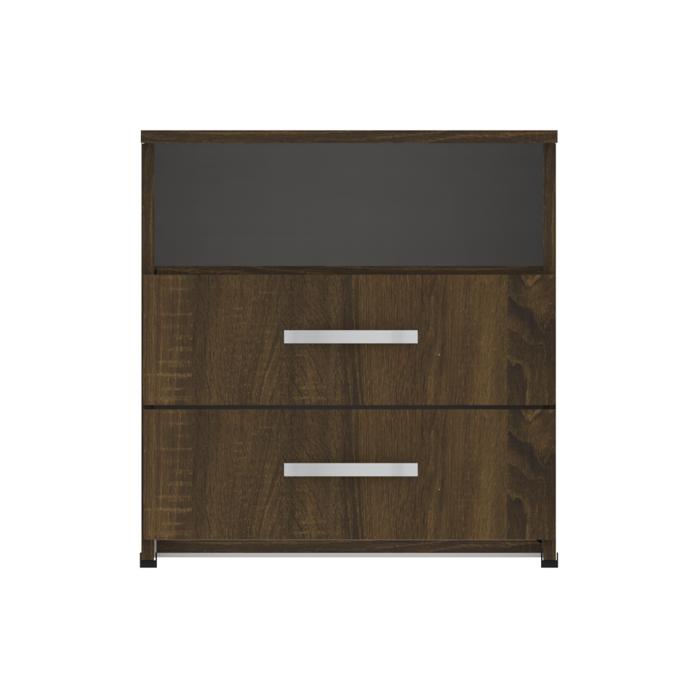 Mueble compacto y útil fabricado en tablero aglomerado con recubierta melamínica de 15mm con dos compartimentos para usos varios, cuenta con dos cajones con riel y manija.