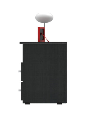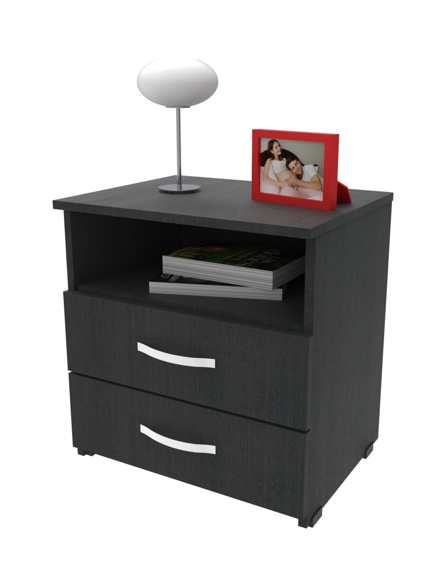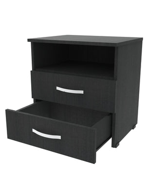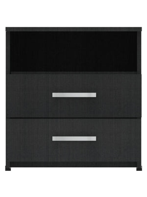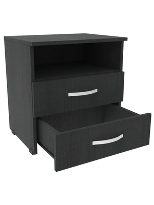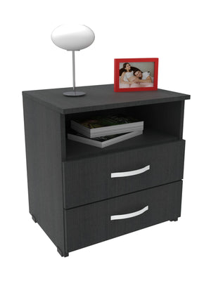 Mueble compacto y útil fabricado en tablero aglomerado con recubierta melamínica de 15mm con dos compartimentos para usos varios, cuenta con dos cajones con riel.