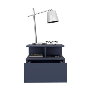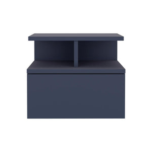 MESA DE NOCHE FLOTANTE NUBE, KRONOS AZUL, CON UN CAJÓN Y DIVISIÓN DE DOS ENTREPAÑOS