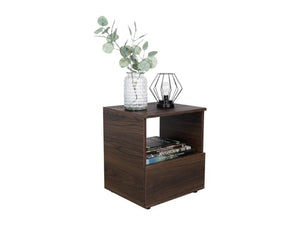 MESA DE NOCHE CAMEL, CAOBA, CON UN CAJÓN INFERIOR DESLIZABLE