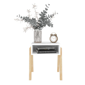 MESA DE NOCHE PINET, BLANCO DUQUEZA, CON UN ENTREPAÑO PARA GUARDAR OBJETOS Y DISEÑO MINIMALISTA