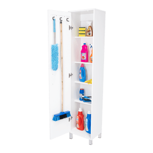 MUEBLE DE ASEO JALISCO, BLANCO, GRAN ESPACIO PARA ALMACENAR ARTICULOS DE ASEO, CON COLGADERO DE ESCOBAS ZF