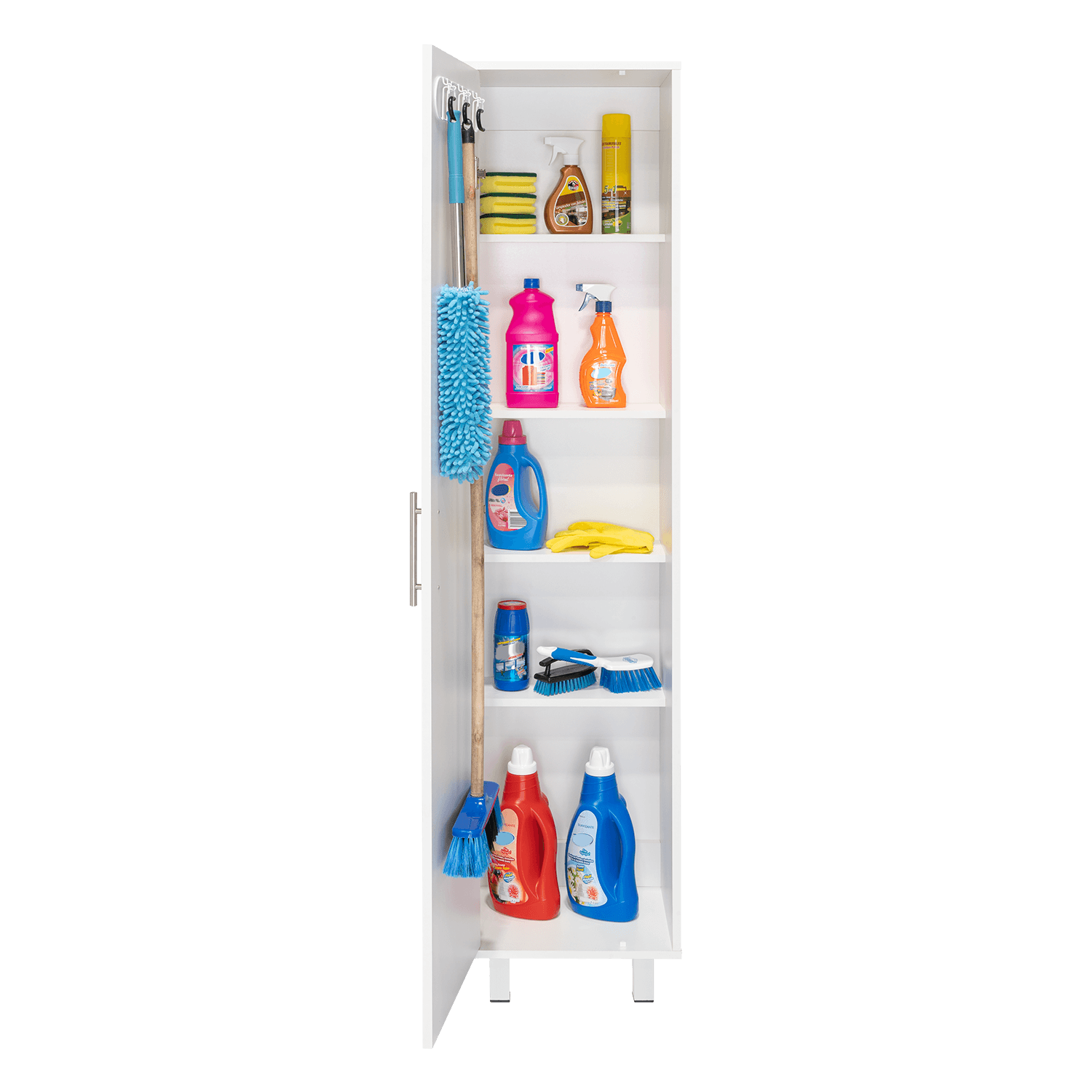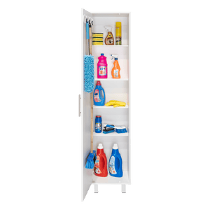 Muebles Aseo con gabinete para articulos de aseo, incluye colgadero para escobas, manijas metalicas.