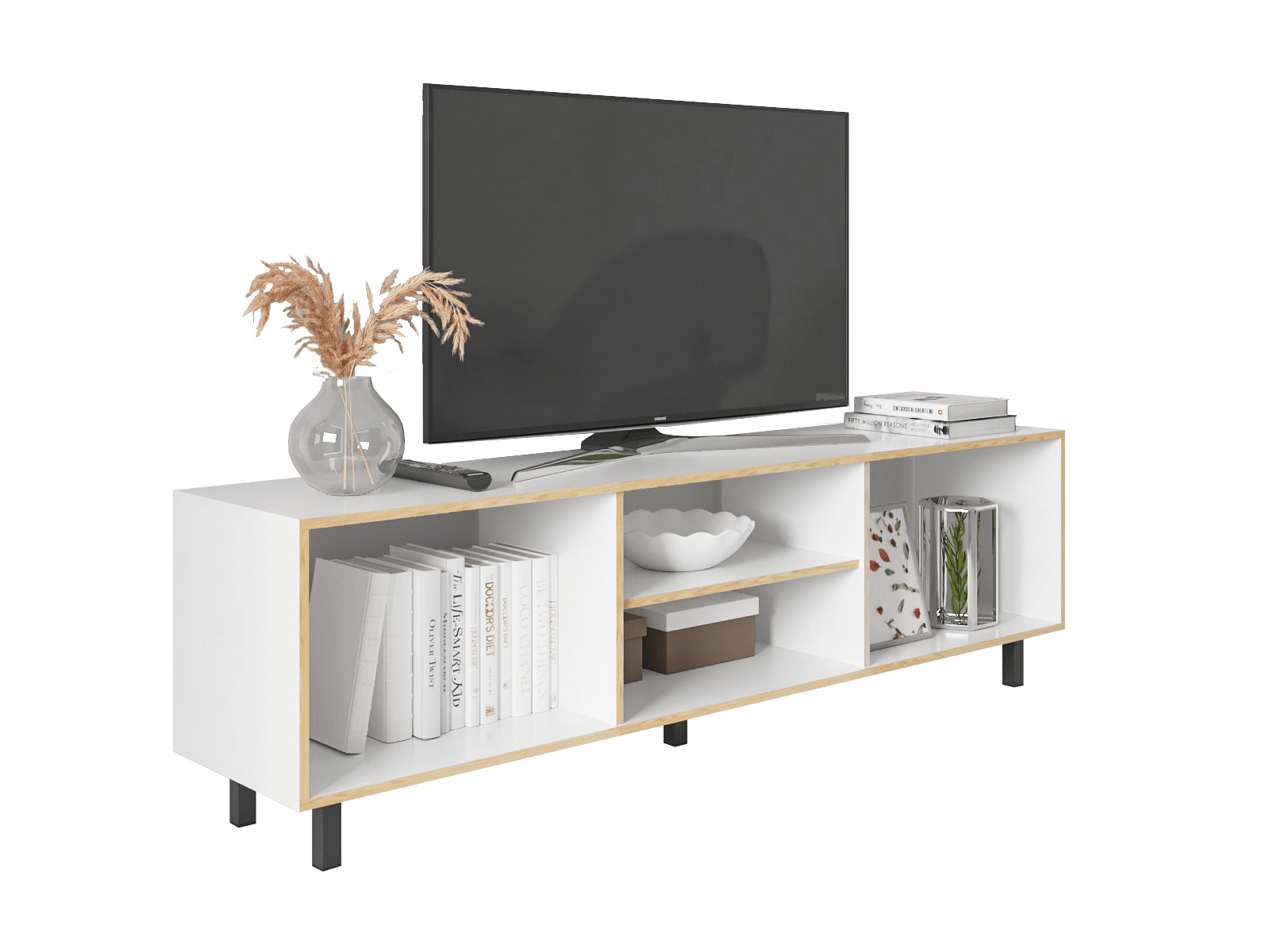 MUEBLE MULTIUSOS TUNEZ, BLANCO Y CAFÉ CLARO PARA TELEVISOR HASTA 70 PULGADAS