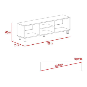 Mueble Multiusos, de 70". cuenta con un entrepaño y cuatro compartimentos para almacenar objetos.