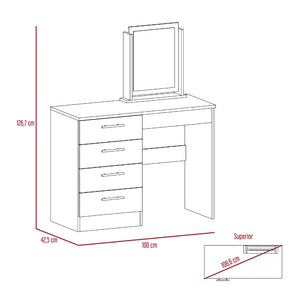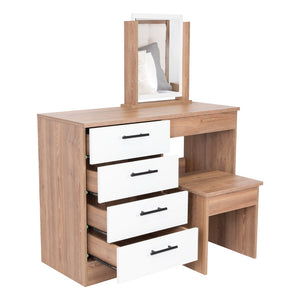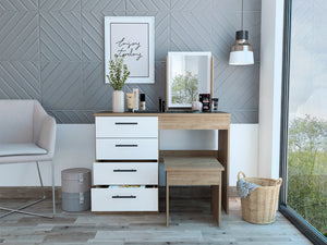 MUEBLE TOCADOR WESLEY, MIEL Y BLANCO, CUATRO CAJONES PARA UBICAR MAQUILLAJE
