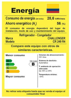 NEVERA NO FROST CHALLENGER 249 LITROS BRUTOS LÚMINA - CR 249