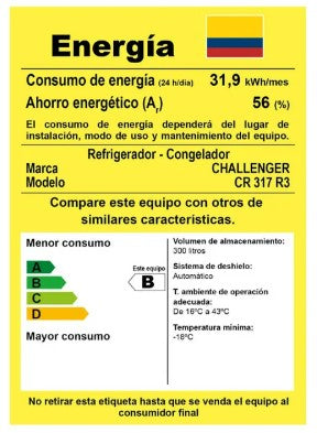 NEVERA NO FROST CHALLENGER 317 LITROS BRUTOS PANEL DIGITAL LÚMINA - CR 317