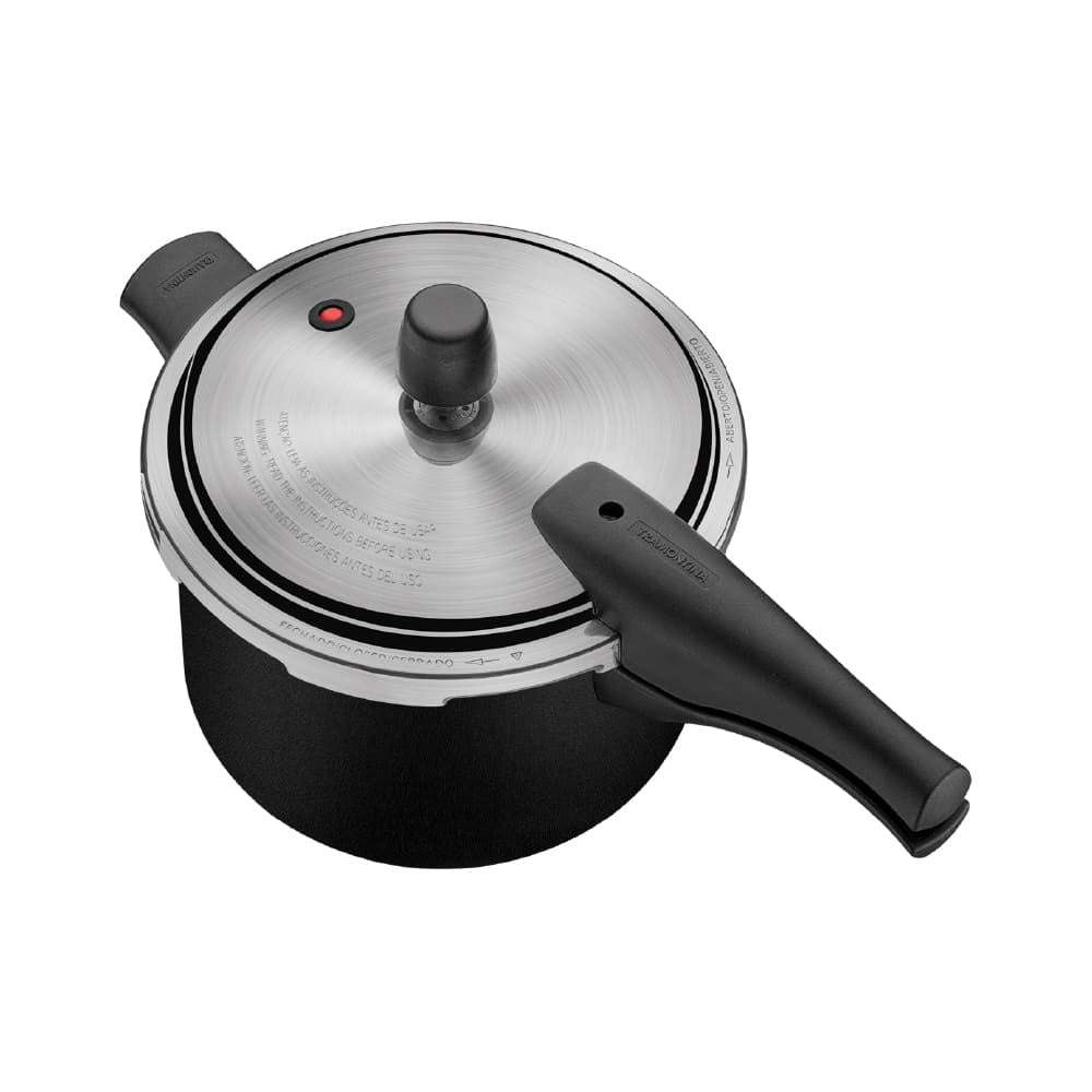 Con la olla a presión Tramontina Vancouver en aluminio con revestimiento interno y externo en antiadherente Starflon Max negro de 20 centímetros de diámetro y 4,5 litros ganará un aliado de alta calidad en la preparación de sus comidas. Sus recetas serán todo un éxito y quedarán listas mucho más rápido. Con una tapa de aluminio con acabado externo cepillado, permite un encaje perfecto y mantiene la presión ideal durante toda la preparación de las comidas. Para garantizar su seguridad, la olla cuenta con asas y mangos superiores e inferiores de baquelita antitérmica, que ofrecen más confort y estabilidad al manipularla. Versátil, también se puede utilizar en diferentes tipos de cocinas, como las de gas, eléctricas o vitrocerámicas (resistencia eléctrica). ¡Elija las ollas a presión Tramontina Vancouver y obtenga un artículo que se adapta a su estilo de vida en la cocina y que eleva sus habilidades culinarias!