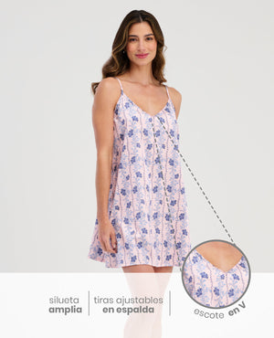BATOLA DE ESCOTE EN V CON DELICADAS TIRAS AJUSTABLES EN LA ESPALDA, DISEÑADA CON UNA SILUETA AMPLIA Y COBERTURA MODERADA PARA BRINDAR LIBERTAD DE MOVIMIENTO Y CONFORT. SU MATERIAL SUAVE Y LIGERO TE BRINDARÁN COMODIDAD Y FRESCURA TODA LA NOCHE. POLIÉSTER/SPANDEX