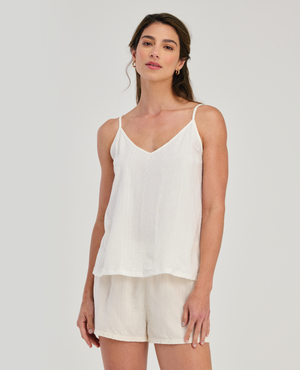 LOGRA UN ESTILO FRESCO Y CÓMODO CON NUESTRA PIJAMA DE SHORT. LA BLUSA TIENE TIRAS AJUSTABLES Y UN FAVORECEDOR ESCOTE EN V, REALZADO CON UNA TÉCNICA DE ESTAMPACIÓN QUE SIMULA UN TEJIDO. EL SHORT CUENTA CON UNA BANDA ELÁSTICA EN LA CINTURA Y ESTÁ CONFECCIONADO EN UN TEJIDO LIGERO Y FRESCO, IDEALPARA EL DESCANSO. VISCOSA.