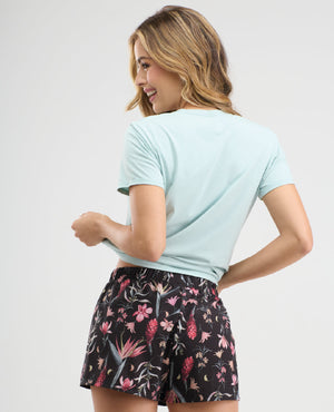CAMISA DE MANGA CORTA, CON ESTAMPADO ATRACTIVO, SILUETA AMPLIA QUE TE HARÁ SENTIR CÓMODA. SHORT CORTO CON CINTURA ELÁSTICA QUE BRINDA UN MAYOR AJUSTE.