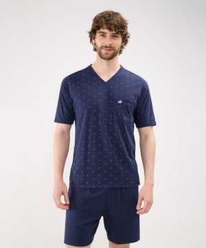 - Site title: Conjunto de pijama para hombre, camiseta manga corta con estampado de pequeñas figuras, pantaloneta con elástico en la pretina, silueta amplia, diseño cómodo y ligero que puedes usar para un descanso fresco y confortable. ¡Añádelo al carrito de compras ahora! 44040202-5151 - Flamingo.com.co