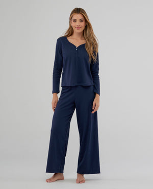 ¡DISFRUTA DE LA COMODIDAD Y ESTILO CON NUESTRO PIJAMA DE BUZO! CON MANGAS LARGAS, CUELLO EN V Y DETALLE DE BOTONES, SU SILUETA SUELTA ES PERFECTA PARA UN AJUSTE ÓPTIMO. EL PANTALÓN LARGO CON CINTURA ELÁSTICA TE BRINDARÁ MÁXIMA COMODIDAD. YA SEA PARA DORMIR O PARA UN LOOK. POLIÉSTER/ELASTANO.