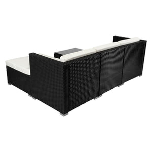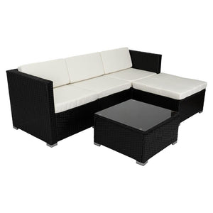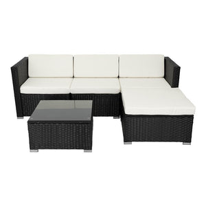 Elaborado en Rattan, Plástico el set incluye mesa y cuatro sillas, en Color Negro y Blanco.