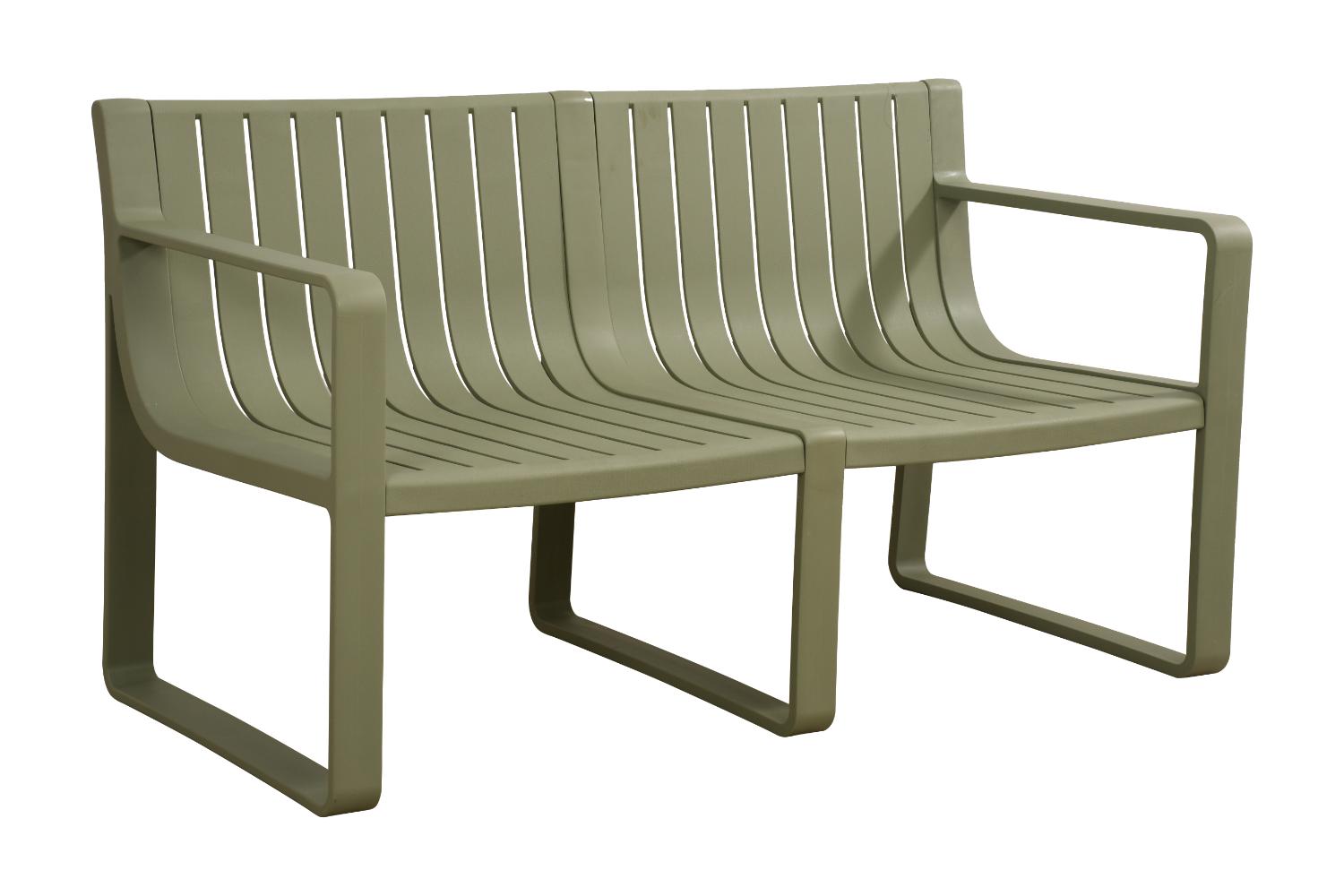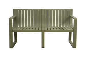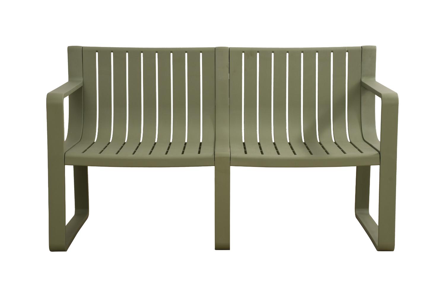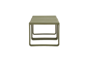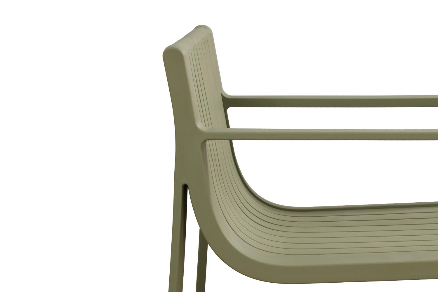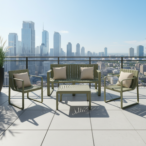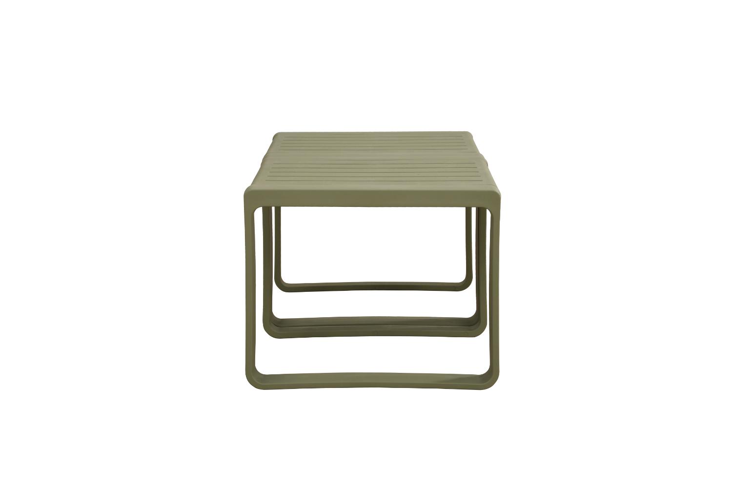 Elaborado en Polipropileno el set incluye mesa centro, dos sillas y un banco, en Color Verde Olivo