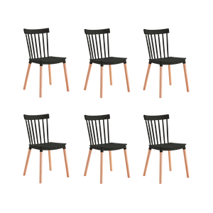 KIT DE SEIS SILLAS JEICOB, NEGRO Y CAFÉ CLARO, CÓMODO ASIENTO Y PATAS EN MADERA