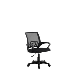 Elaborado con espalda en malla, brazos en Nylon, asiento de espuma y base de nylon, de excelente calidad, en color Negro.