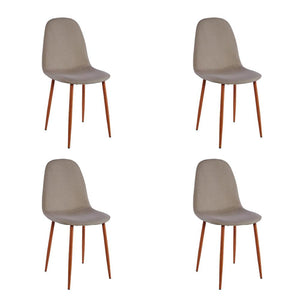 Sillas clásicas incluye 4 unidades, con tapiz en tela de lino e interior de espuma, con patas en acero amaderado, para múltiples ambientes, practico uso.