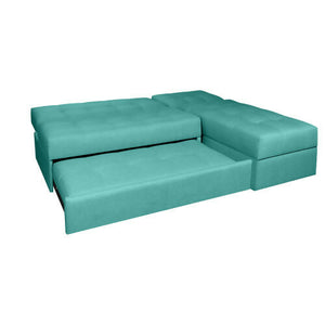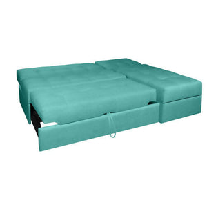 SOFA CAMA ANGELA EN L CON BRAZOS ANTIFLUIDOS TURQUESA