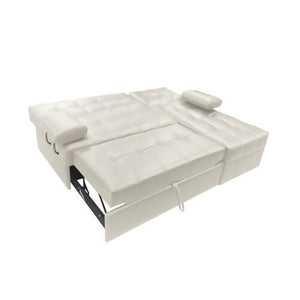 SOFA CAMA ANGELA EN L CON BRAZOS CUERO SINTÉTICO BEIGE