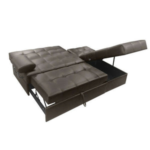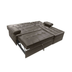SOFA CAMA ANGELA EN L CON BRAZOS CUERO SINTÉTICO CAFÉ