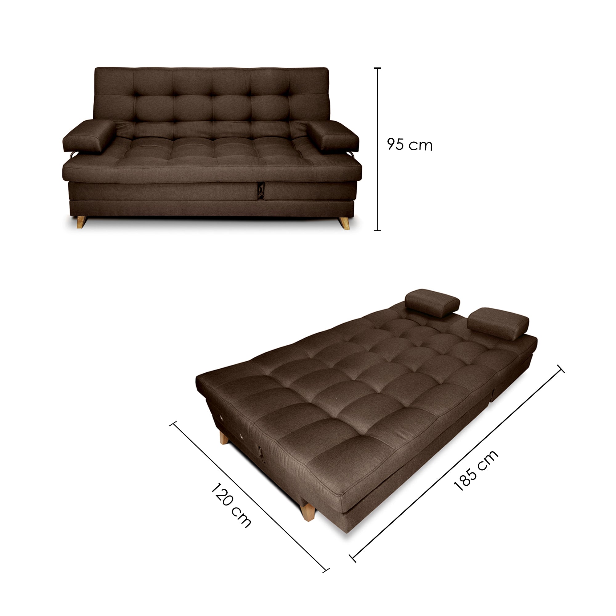 SOFÁ CAMA BALMAIN 5 POSICIONES 95X60X185 CAFÉ
