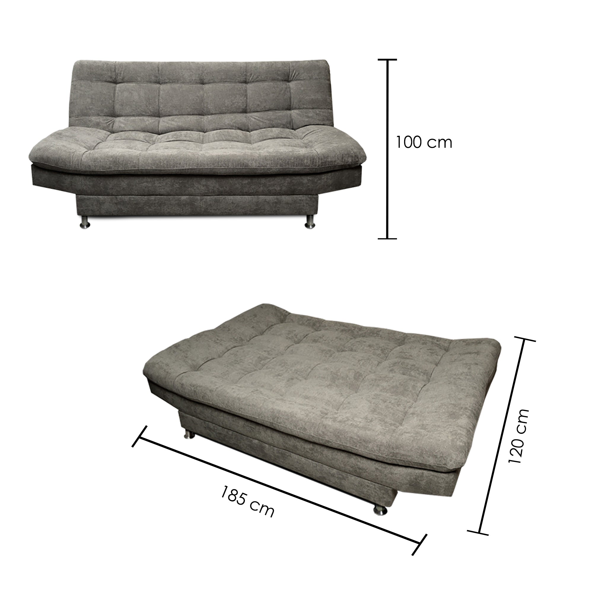 Sofá cama 3 cuerpos y 3 posiciones: modo sofá, reclinado y cama. Con diseño funcional. Ideal para optimizar tus espacios con máximo confort. Tapizado en tela lino de excelente calidad y patas en acero inoxidable con antideslizante, especial para evitar daños en el piso. Estructura en madera inmunizada y espumas de alta densidad.