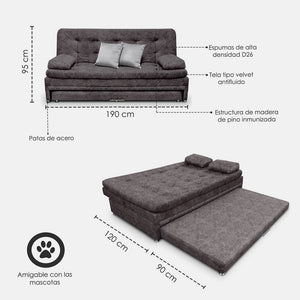 SOFÁ CAMA NIDO OLSEN 95X190X60 TELA CAFÉ INCLUYE COJINES