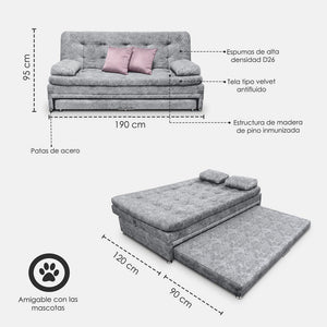 SOFÁ CAMA NIDO OLSEN 95X190X60 TELA GRIS INCLUYE COJINES