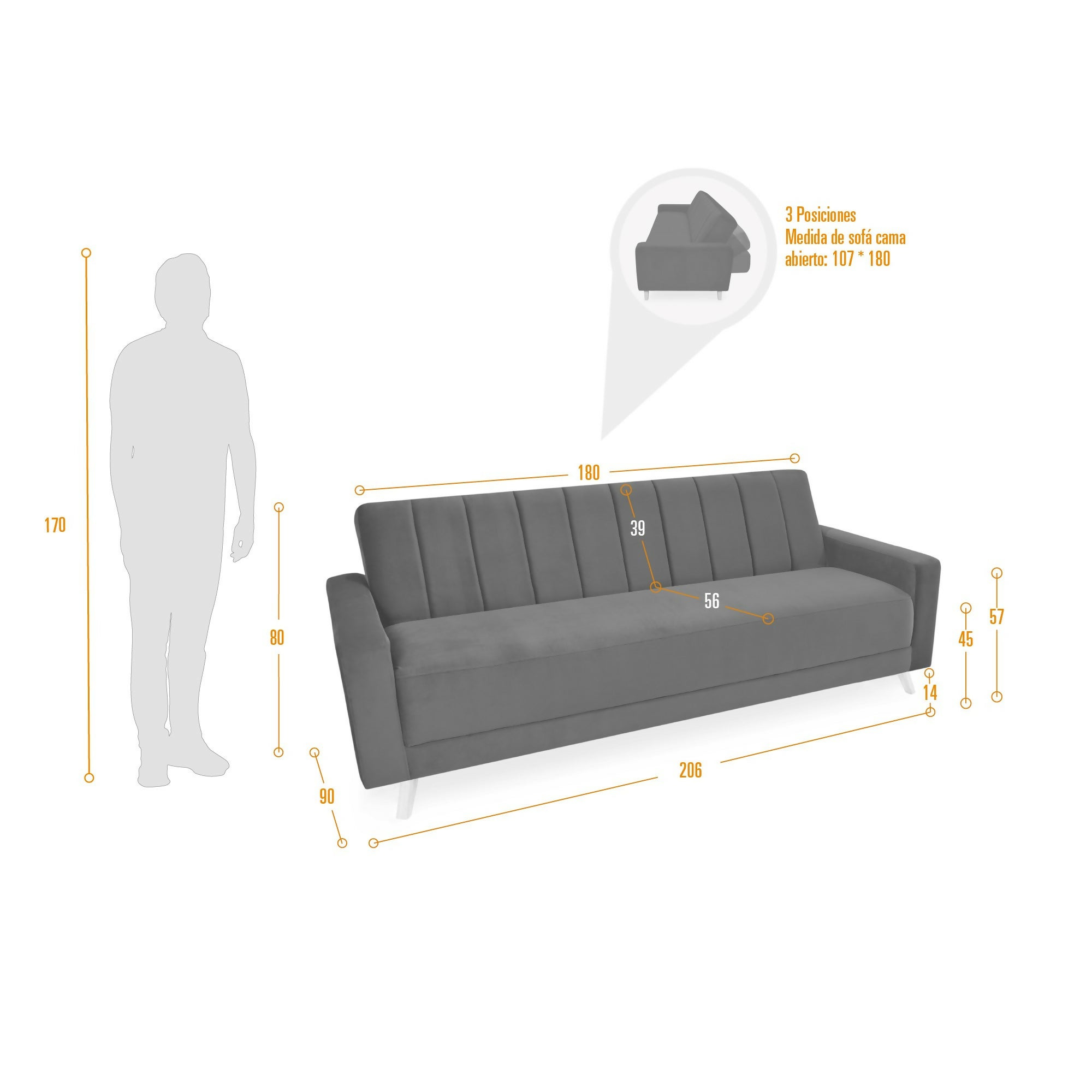 ✅ Se convierte en cama: 180 cm largo x 107 cm ancho x 45 cm altura.