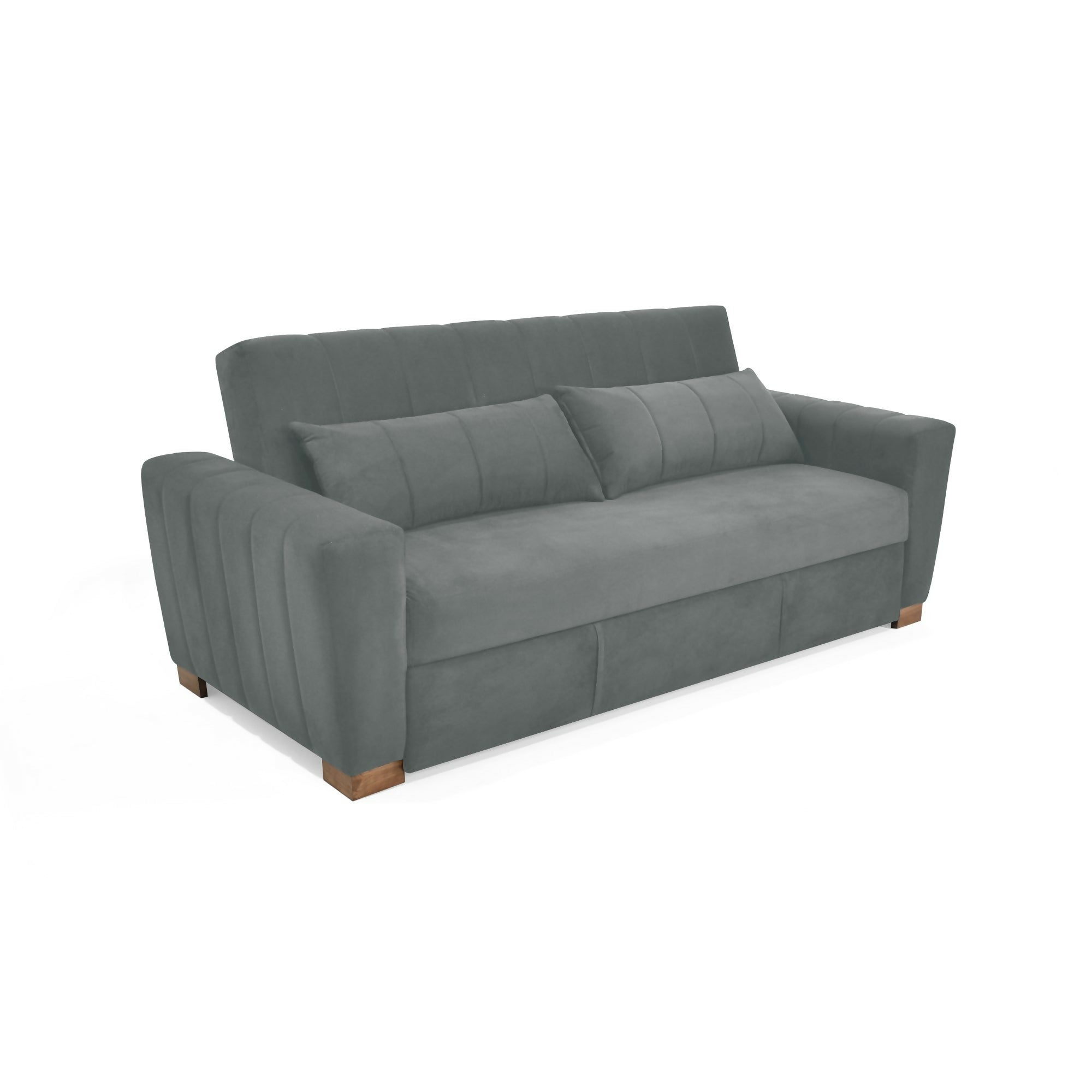✅ Sofá cama 3 puestos, con detalles de costura verticales en su espaldar y apoyabrazos.