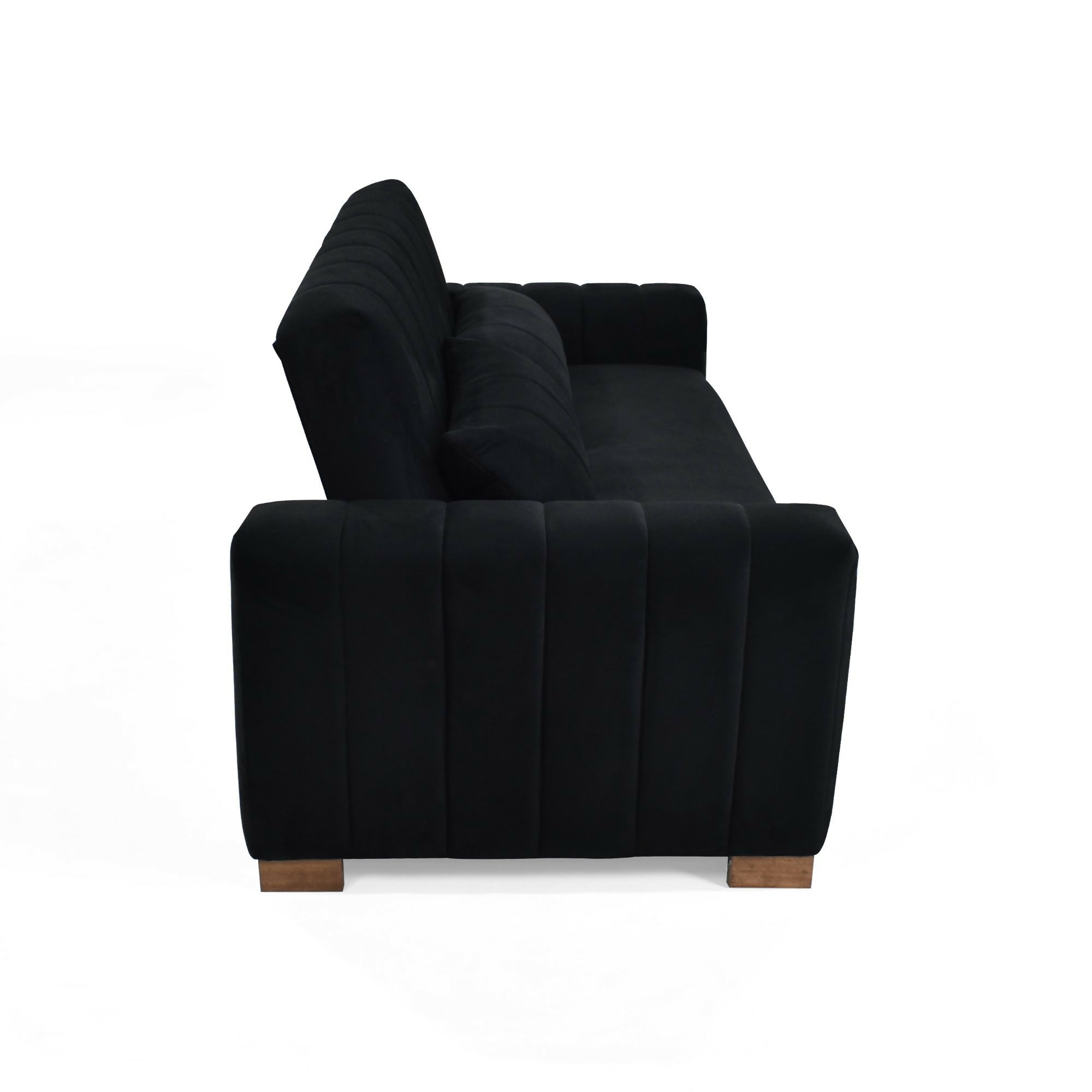 ✅ Sofá cama 3 puestos, con detalles de costura verticales en su espaldar y apoyabrazos.