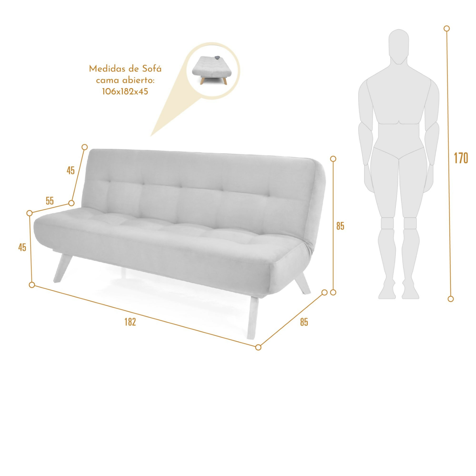✅ Se convierte en cama: 182 cm largo x 106 cm ancho x 45 cm altura.